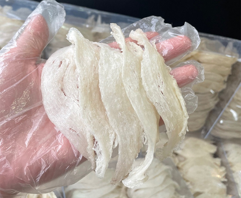 2、燕窩挑凈:泡發后順纖維撕開挑凈除雜,清洗干凈。